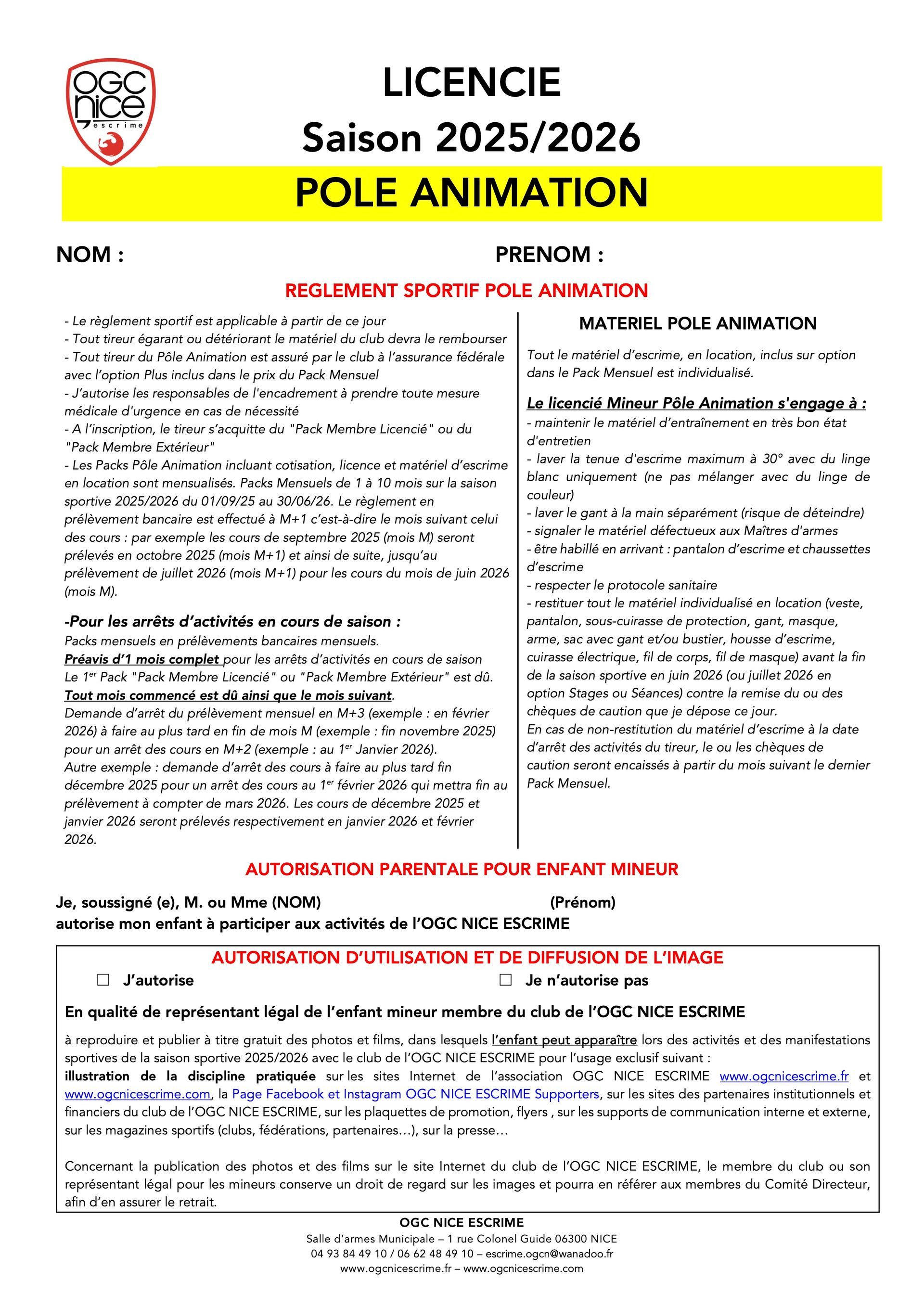 - Faire passer les "Lames" et "Armes" du Livret de formation de la Fédération Française d'Escrime