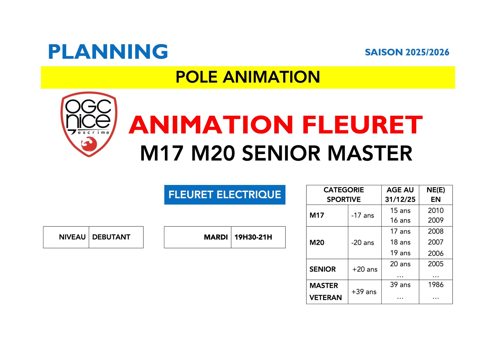 Animation Fleuret M15-M17-M20-Senior-Vétéran Perfectionnement
