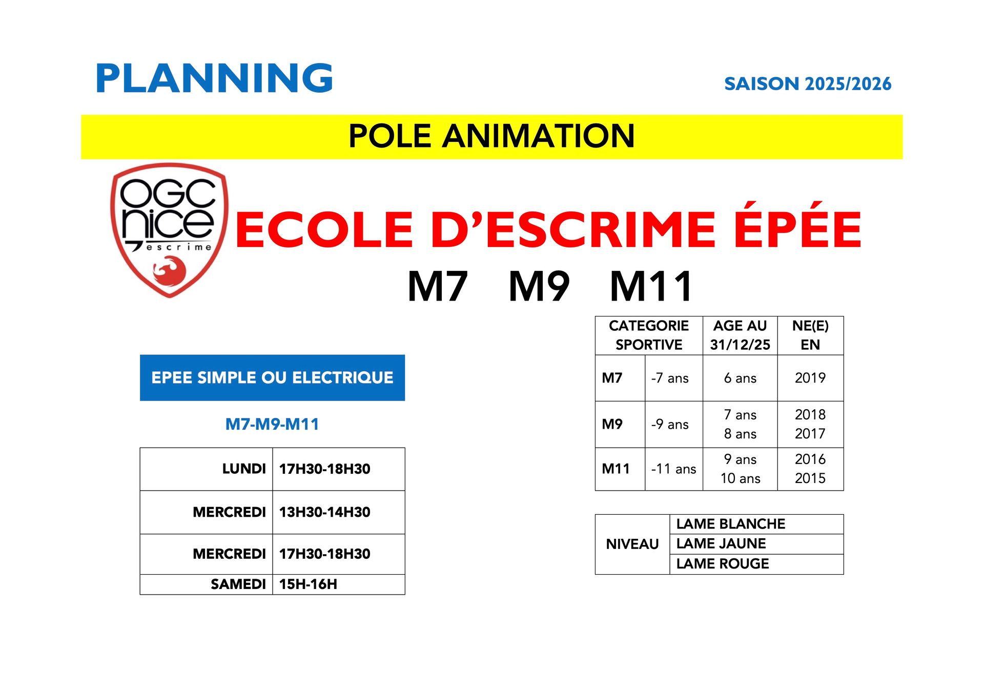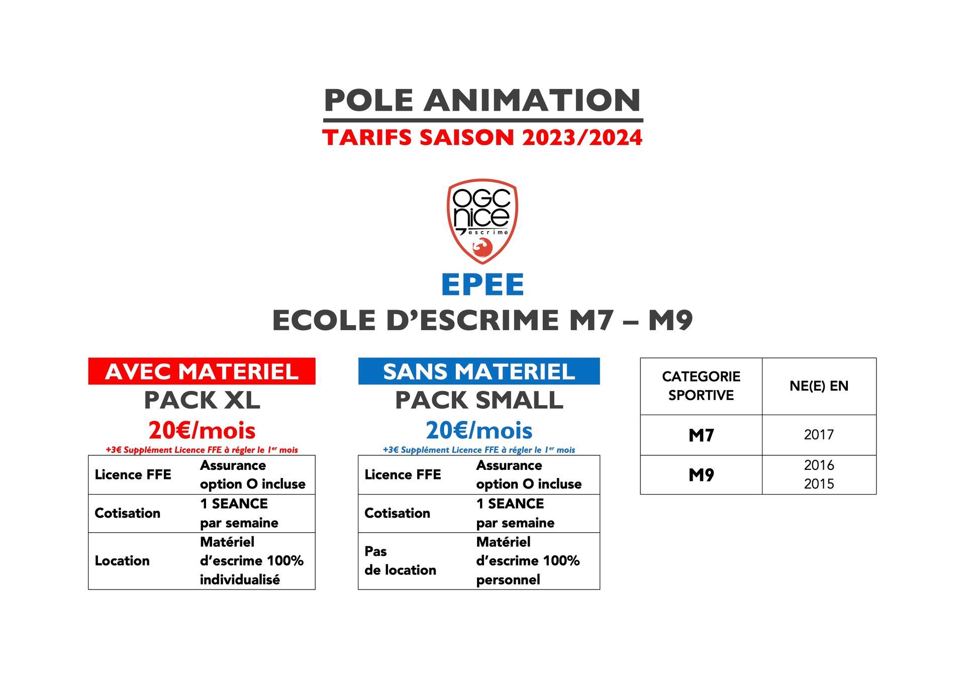 Tarifs réduits -50% M7-M9 Ecole d'escrime EPEE :