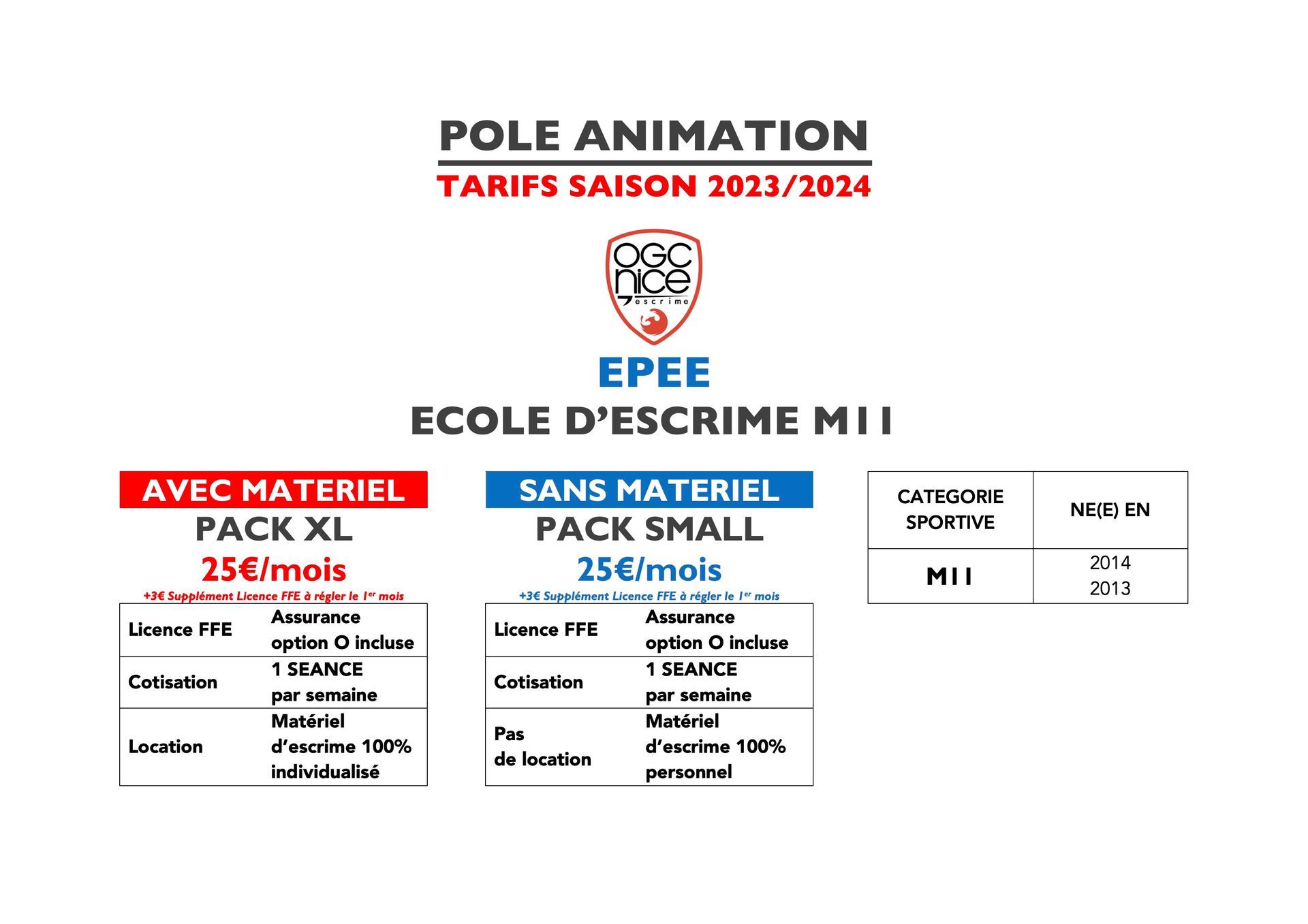 Tarifs réduits -50% M11 Ecole d'escrime EPEE :