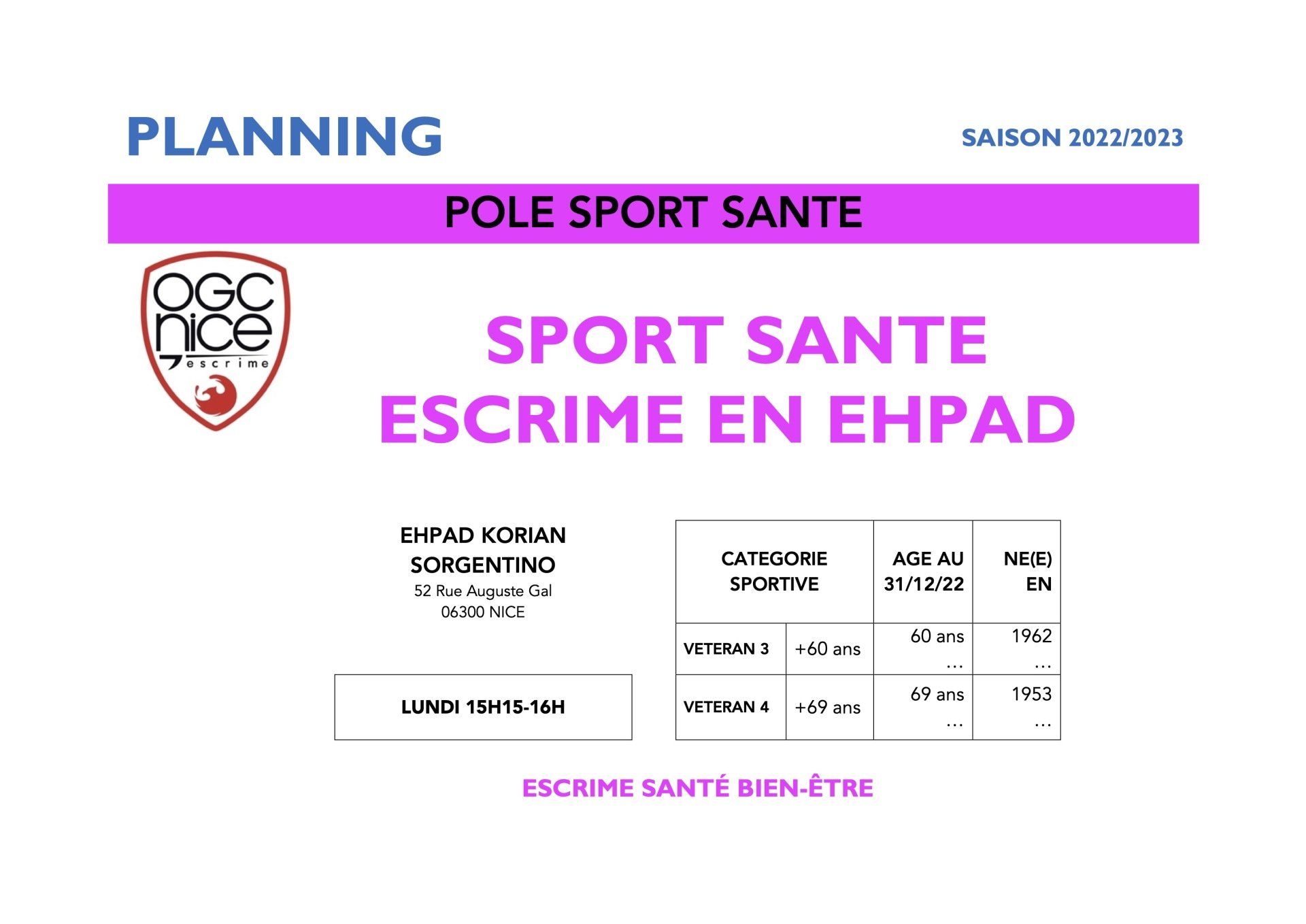Pratique de l'escrime pour les Hommes et Femmes "Seniors" retraités en EHPAD