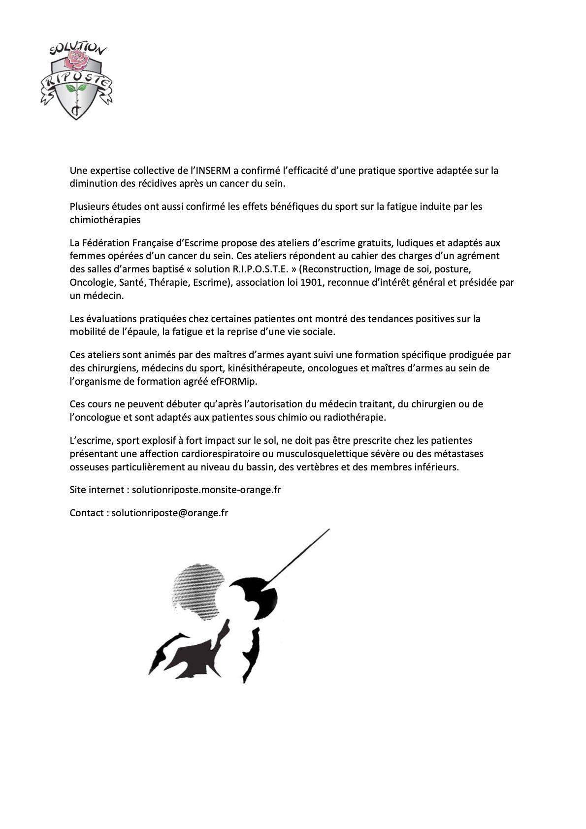 SPORT SANTE ESCRIME ET CANCER DU SEIN
