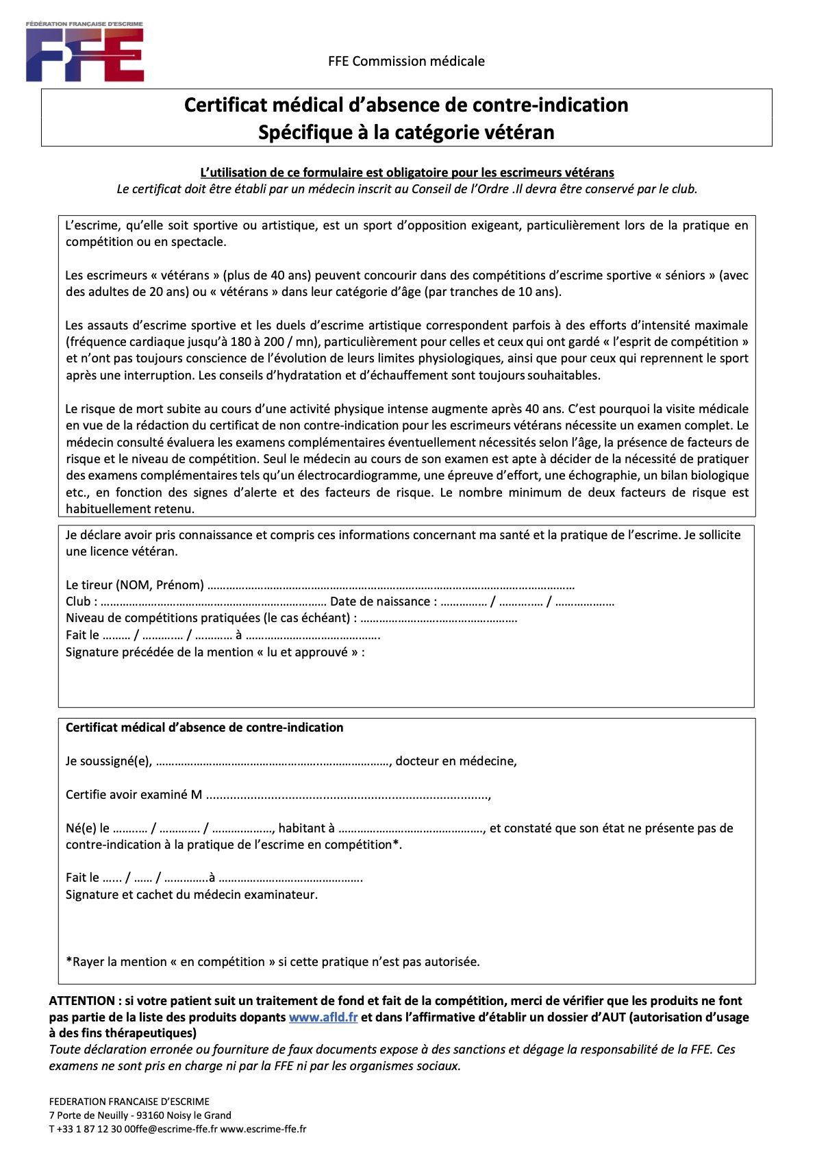 - Gratuité Licence FFE Escrime Santé : aide du montant de la licence FFE de 18,58€ versée par le club après paiement de la licence FFE