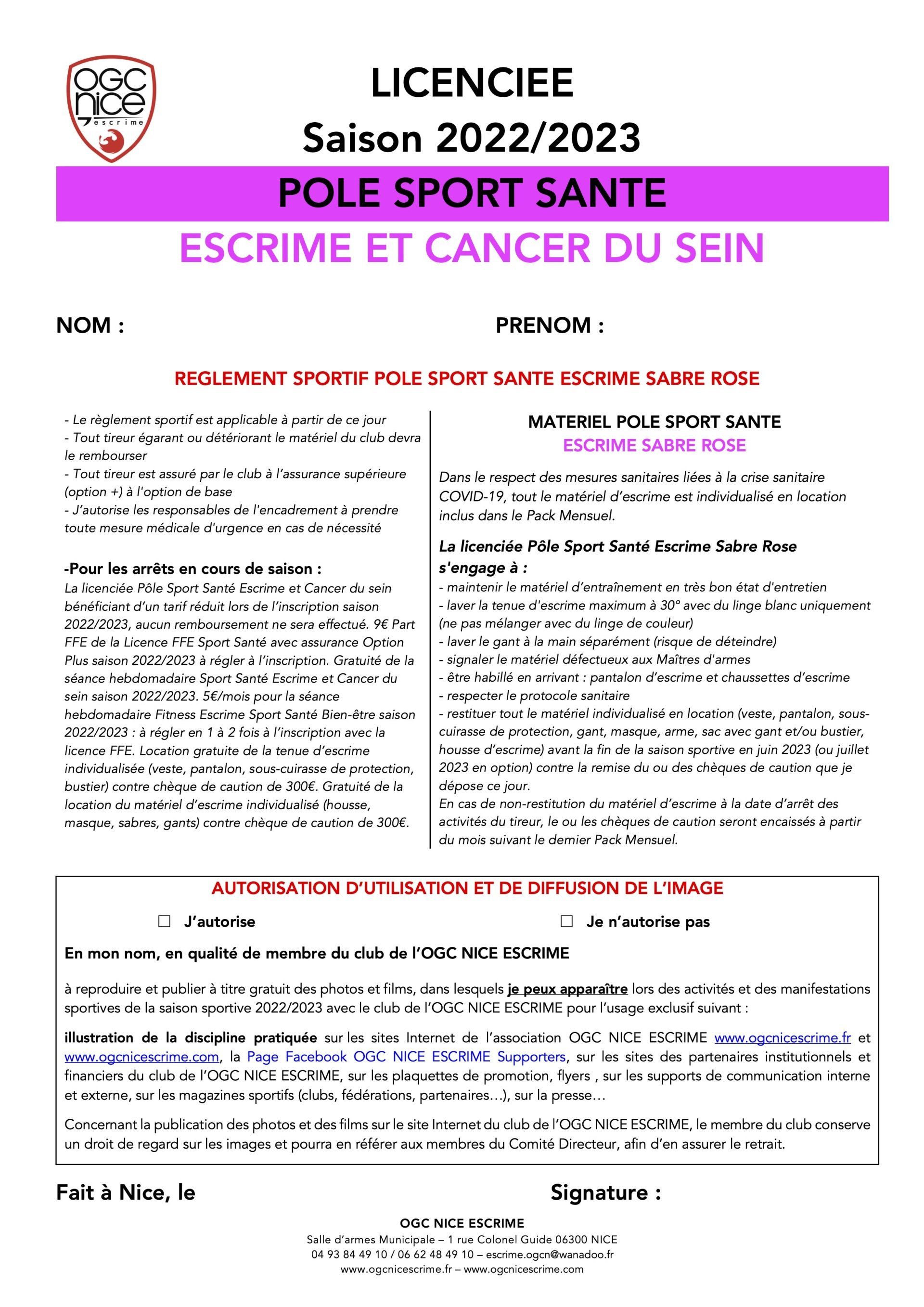 Groupe Sport Santé "Escrime et Cancer du sein"