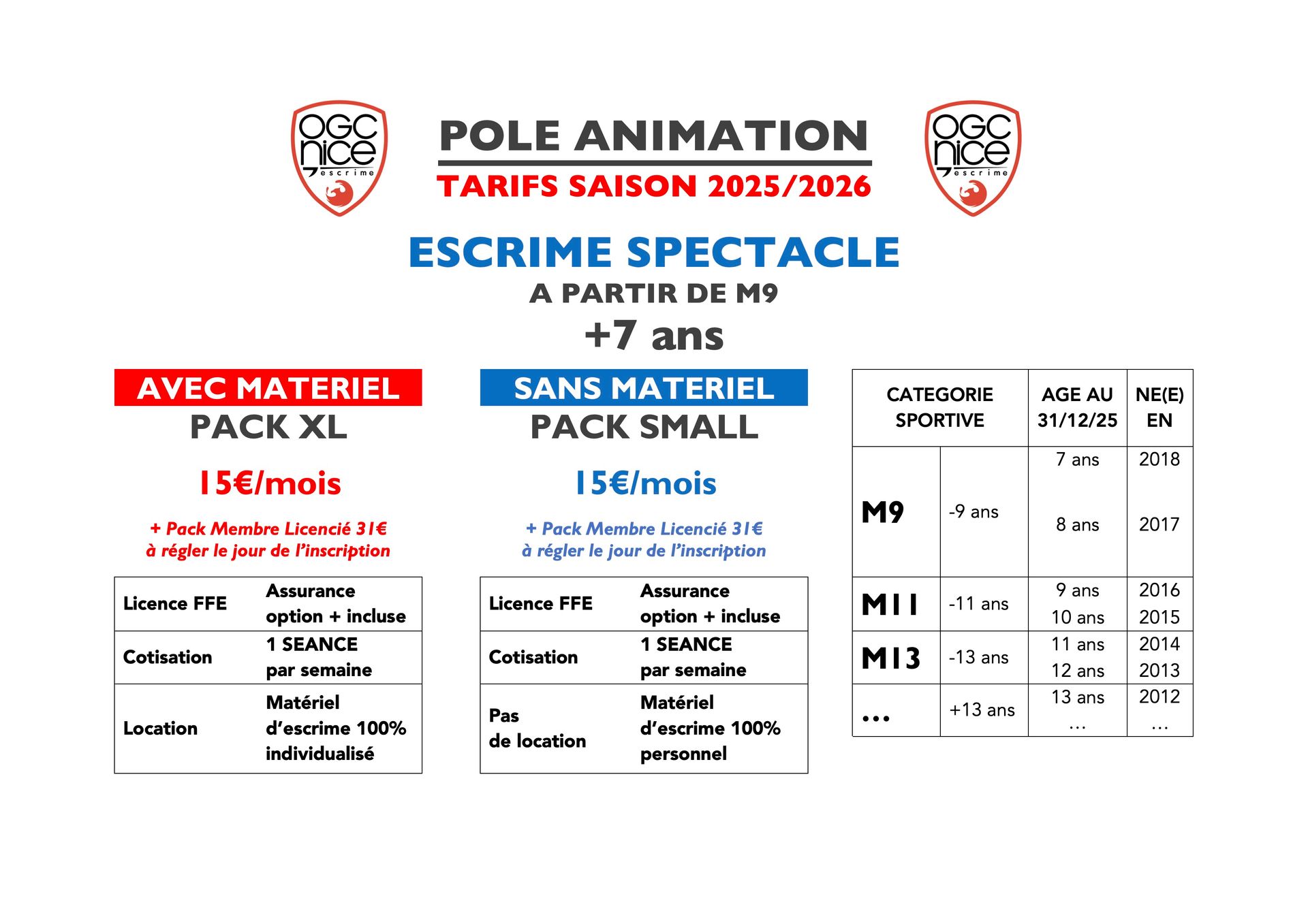 + PACK MEMBRE Licencié 31€ à régler le jour de l'inscription