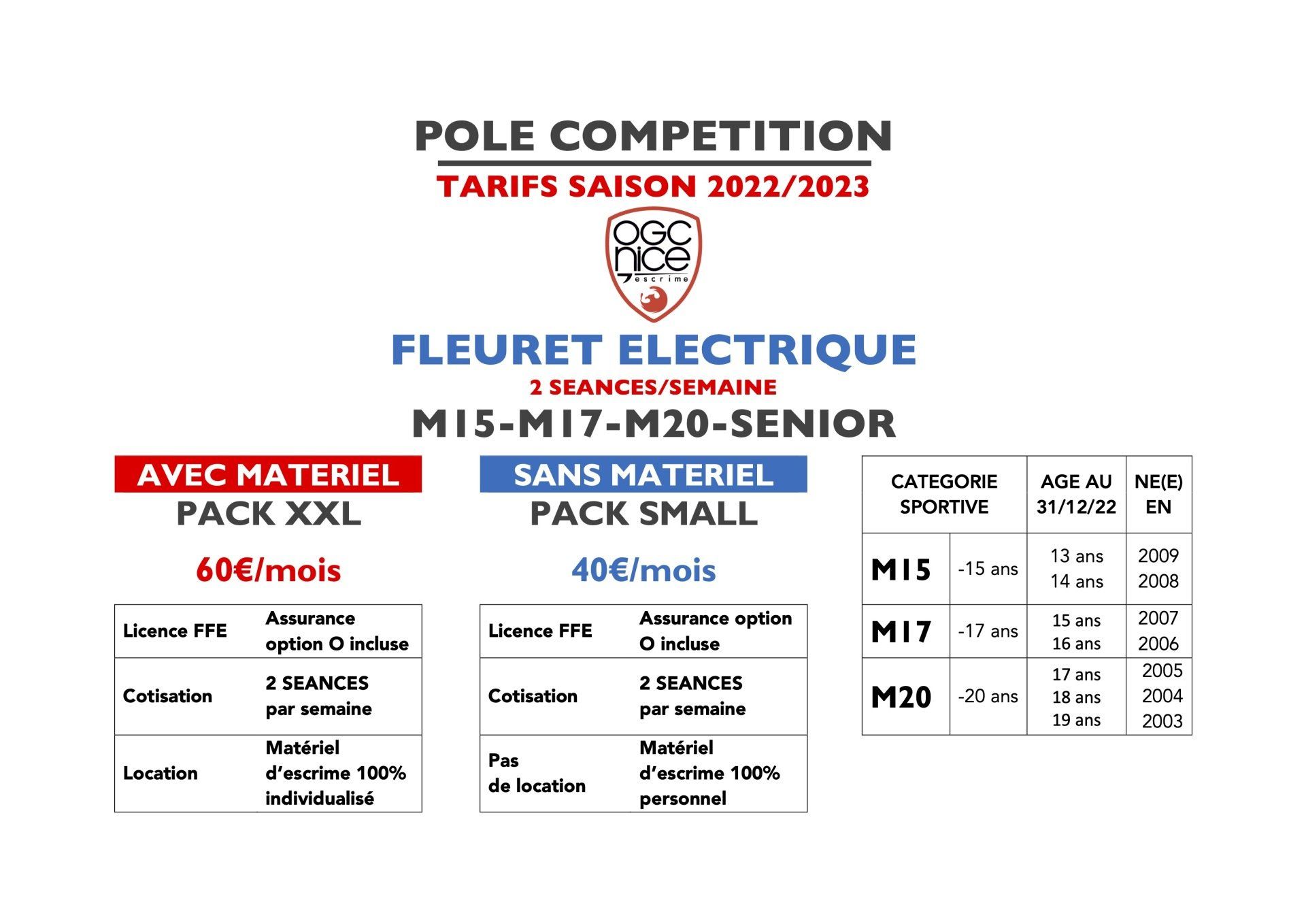 * Pour les meilleurs : intégrer le Pôle Compétition National Fleuret (Action Sport de Haut niveau) et participer aux compétitions : Zone, Circuit national, Championnat de France sur sélection