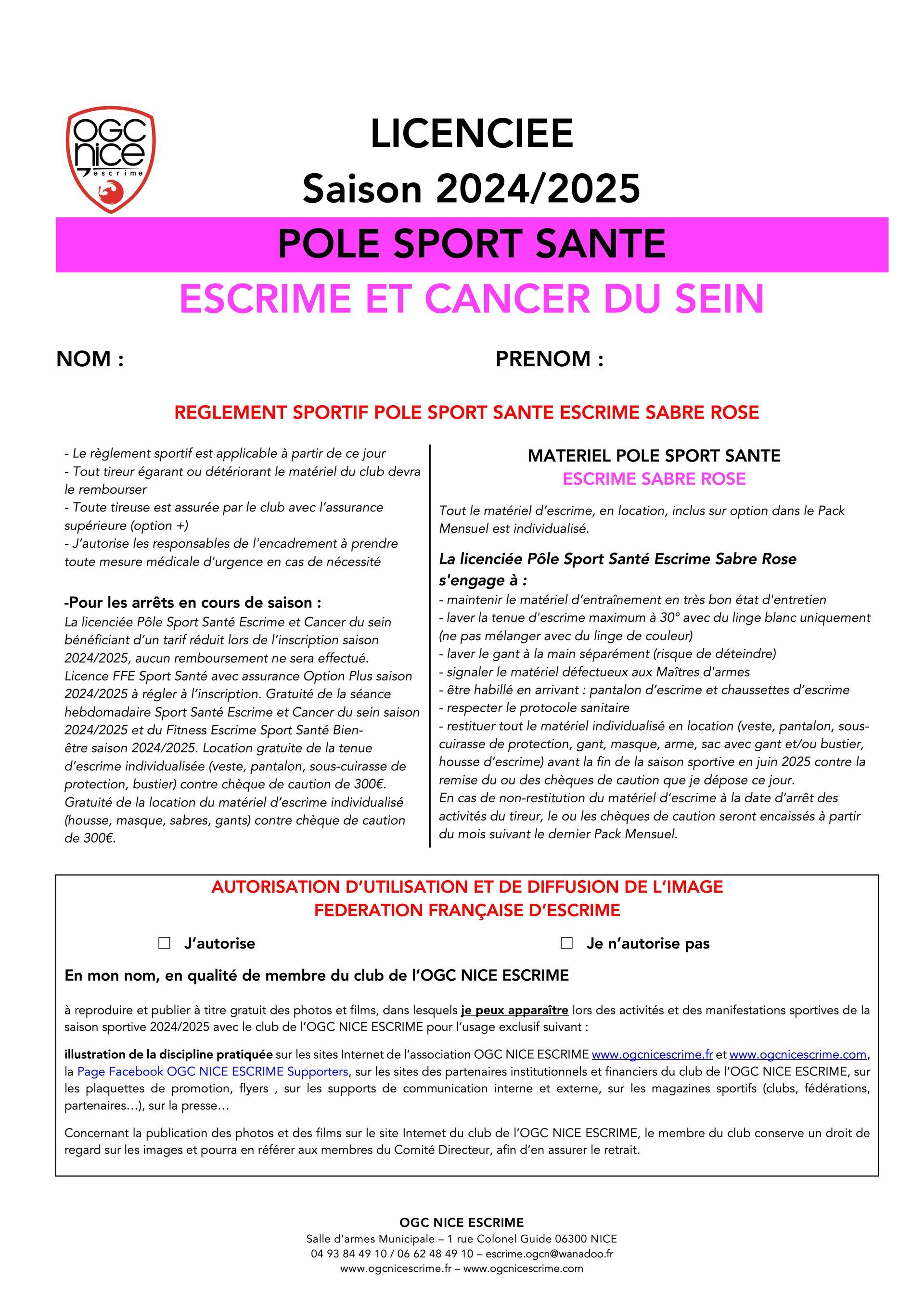 - Sport Santé "Escrime et Cancer du Sein"